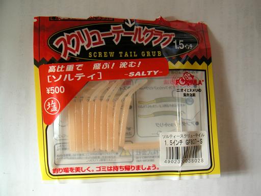 しましたソフトルアーは、スクリューテールグラブの薄いオレンジ(グロー)・・夜なら