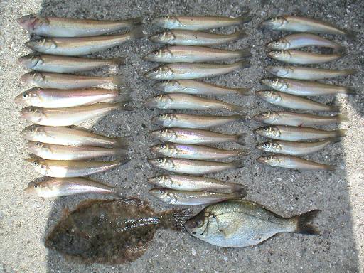 カレイ23cm1匹、タナゴ1匹(サイズは???) でございました。さきほど