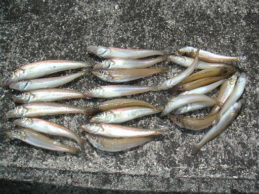 今日の釣果でございます。最大寸20cmってとこかなー。26匹いました。