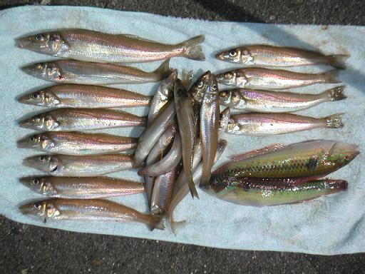 今日の釣果ですが、16cm〜21cmが12匹、私の練習の犠牲になった15cm以下