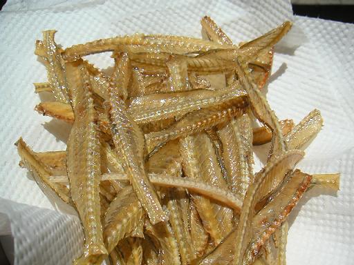 揚げ過ぎると焦げ臭くなって食えません。色々試してみましたが、骨せんべいはキスと