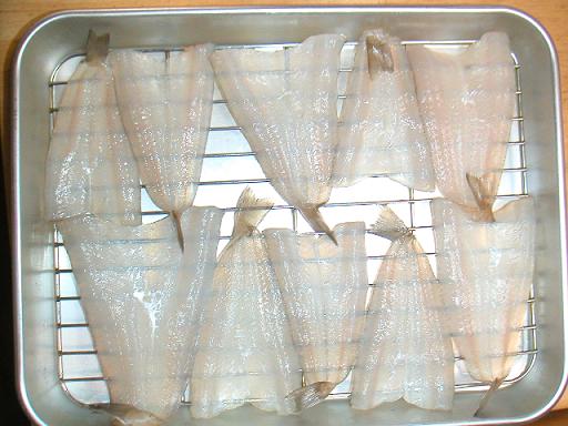 今日のは天ぷら用ではございません。じつはコレ一昨日のキスを背開き→塩水漬け→