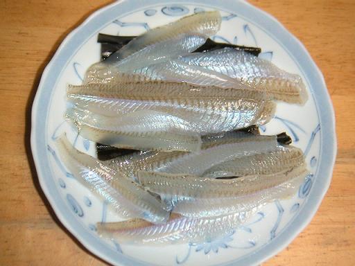 入れた容器へと放り込んで、しっかりと身を〆ます。で、かるく水分をとって、